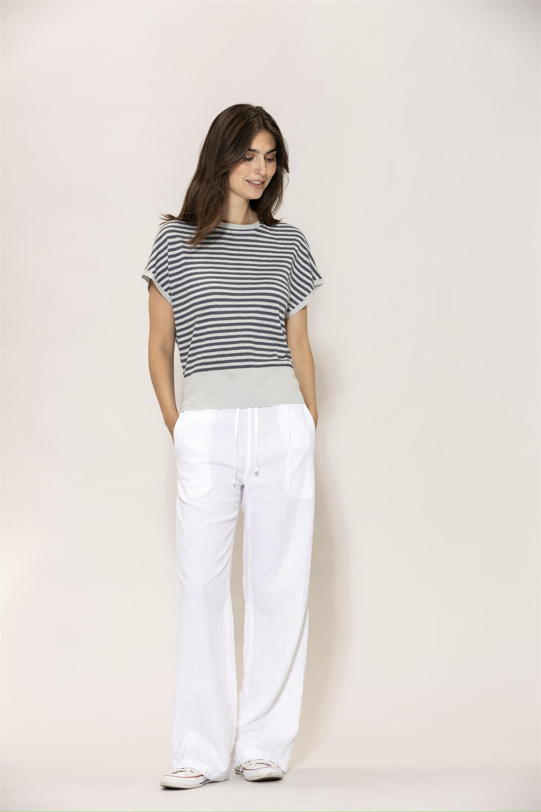 Laila Linen Blouse - GreyMist/DustyNavy