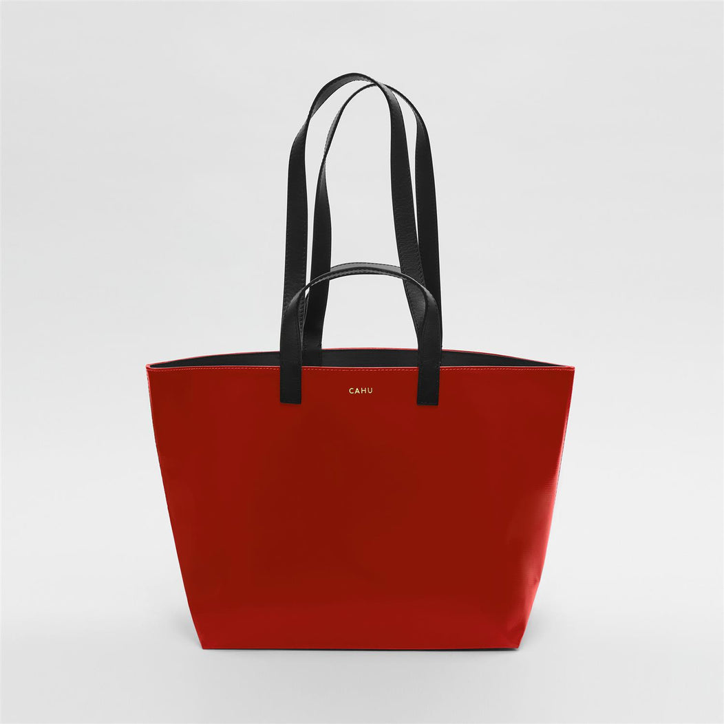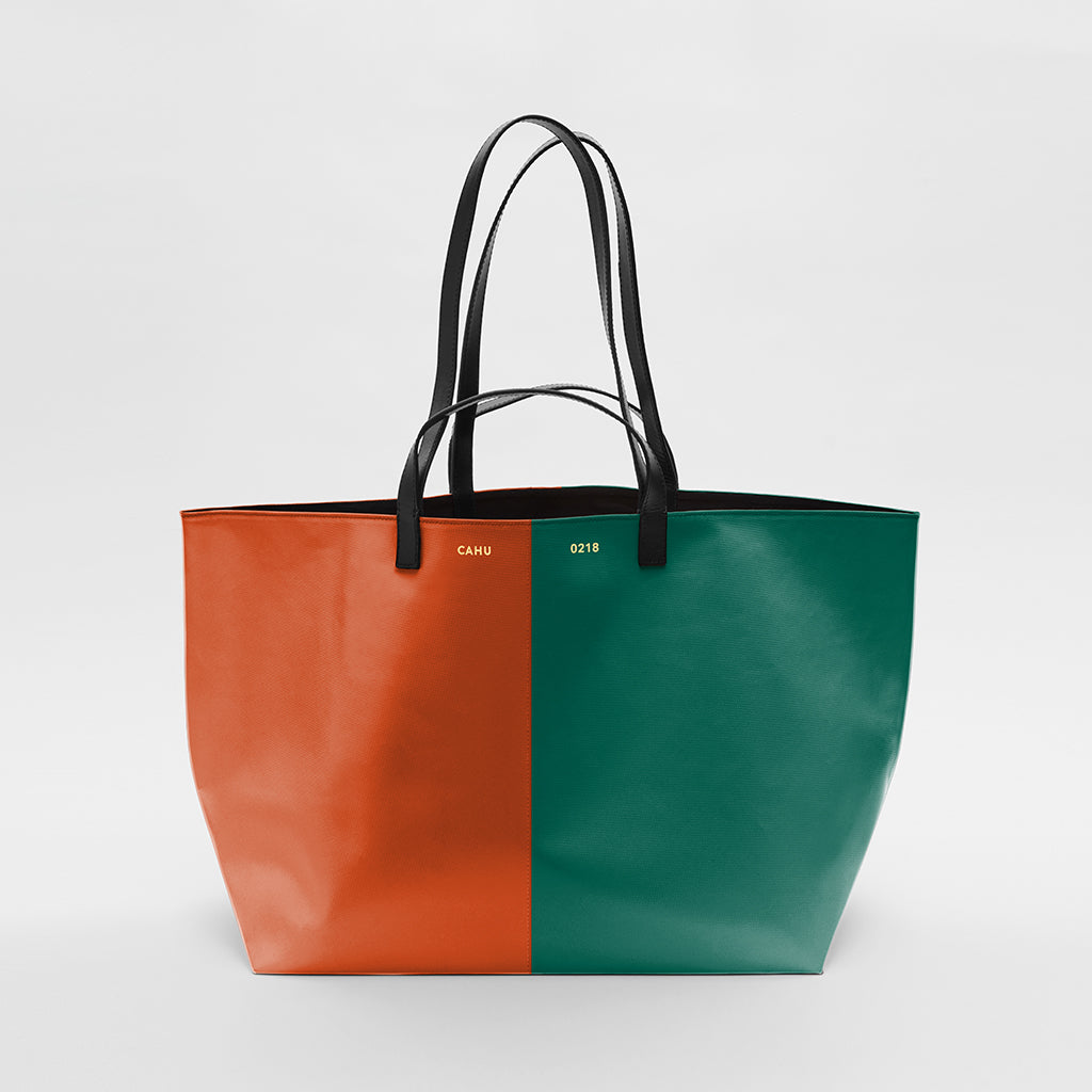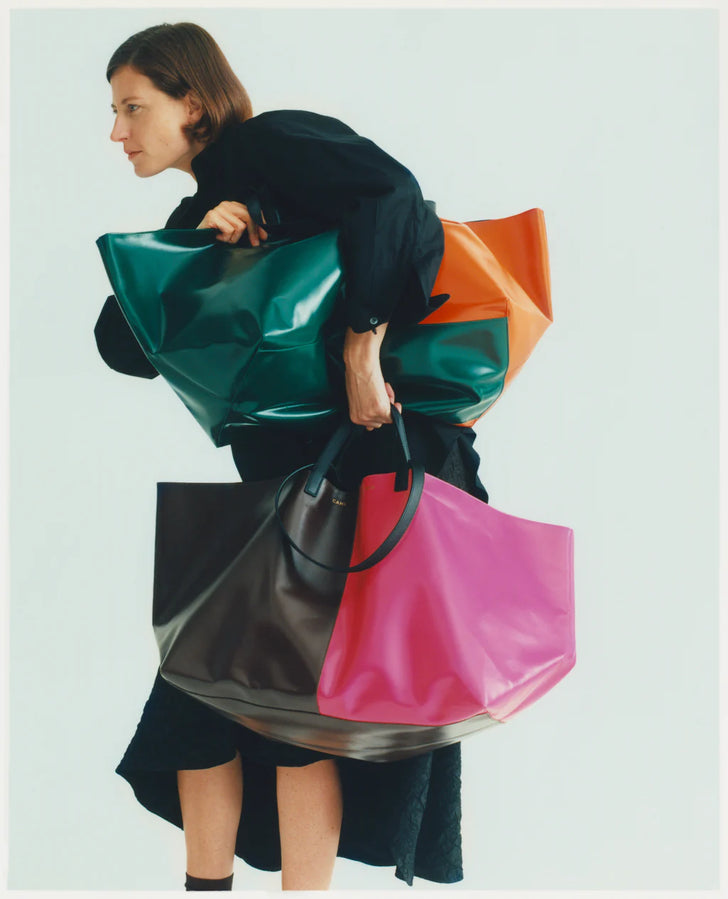 Cahu is a Parisian line of PVC bags and accessories. Growing up in Normandy near her father’s jumping castle factory, Clémence Cahu was introduced to the bright, shiny fabric used to manufacture inflatables from an early age.After moving to Paris to study fashion, she worked as a designer and collaborated with some of the biggest names in the industry before founding Cahu in 2018. Sourcing PVC from the family factory, the designer pairs the hardy material with the finest cottons and the world’s most sought-after leather to create striking accessories with contemporary silhouettes. Practical by nature, “Pratique” by name, the brand’s signature tote bag is lightweight, water-resistant and easy-to-maintain and comes available in three generous sizes and single or two-tone colours. With its long-wearing, indefatigable PVC, Cahu accessories are made to follow you anywhere, in any weather, forever.