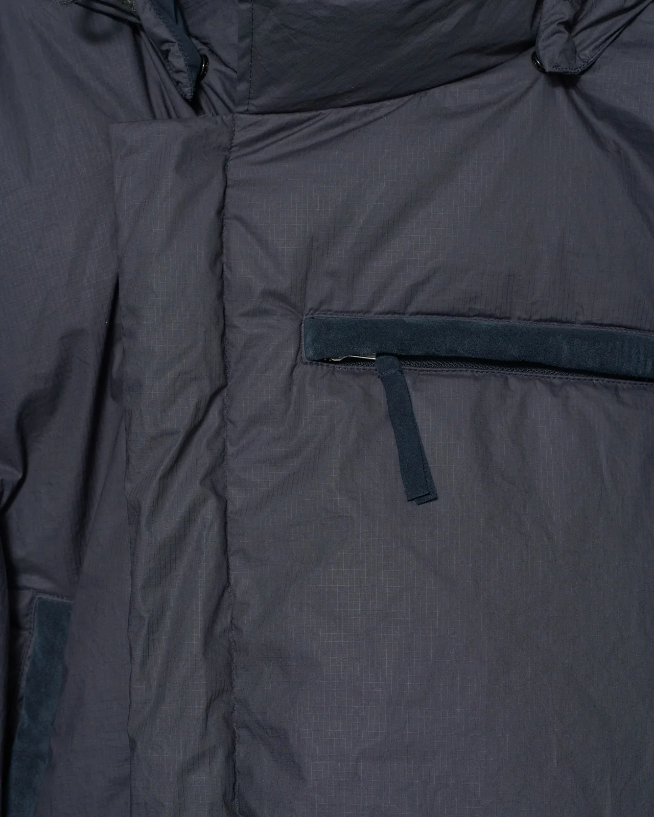 Denne ultralette dunjakken er laget av 100 % vannavvisende ripstop-bomull fra British Millerain. Den luftige dunfyllet kommer fra RE:DOWN, som samler inn, steriliserer og resirkulerer dun fra forbrukte produkter over hele Europa. Lommene er forsterket med italiensk semsket skinn for å minimere slitasje.
