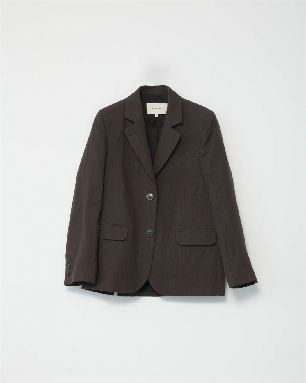 Linen STRAIGHT BLAZER WITH A SLIGHTLY OVERSIZED FIT. FEATURING HORN BUTTON CLOSURE, 2 IN THE MIDDLE AND 1 NECK CLOSURE. LONG STRAIGHT SLEEVES, TWO FRONT POCKETS AND BLACK LINING.