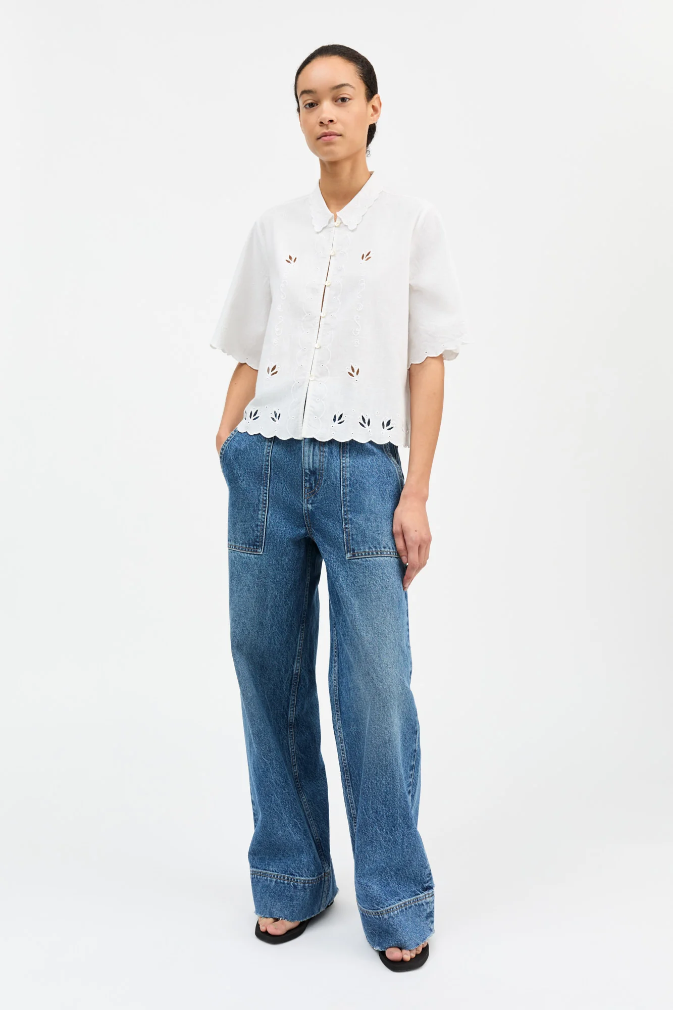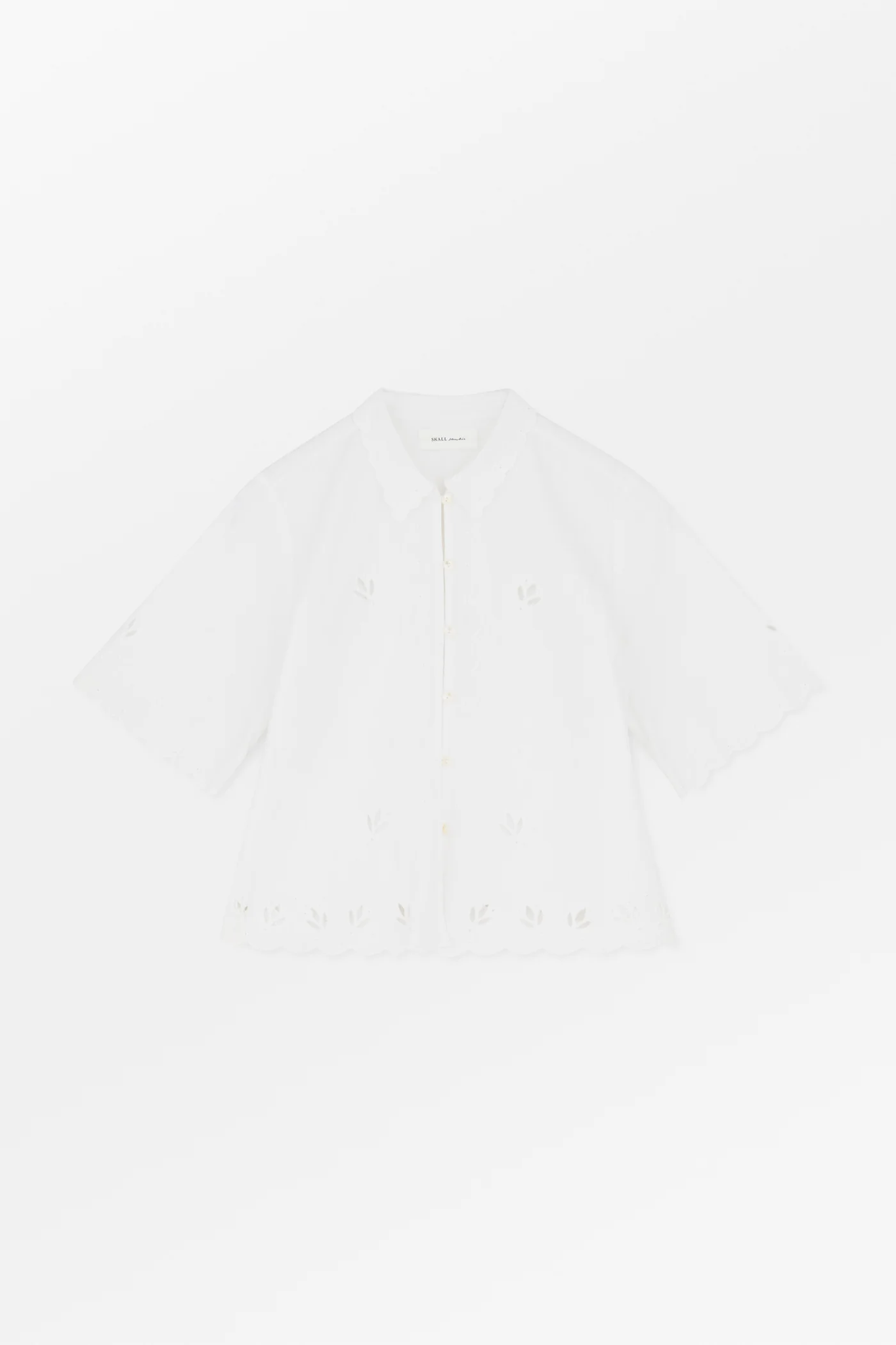 Short sleeve shirt with collar, embroidery and cut work.