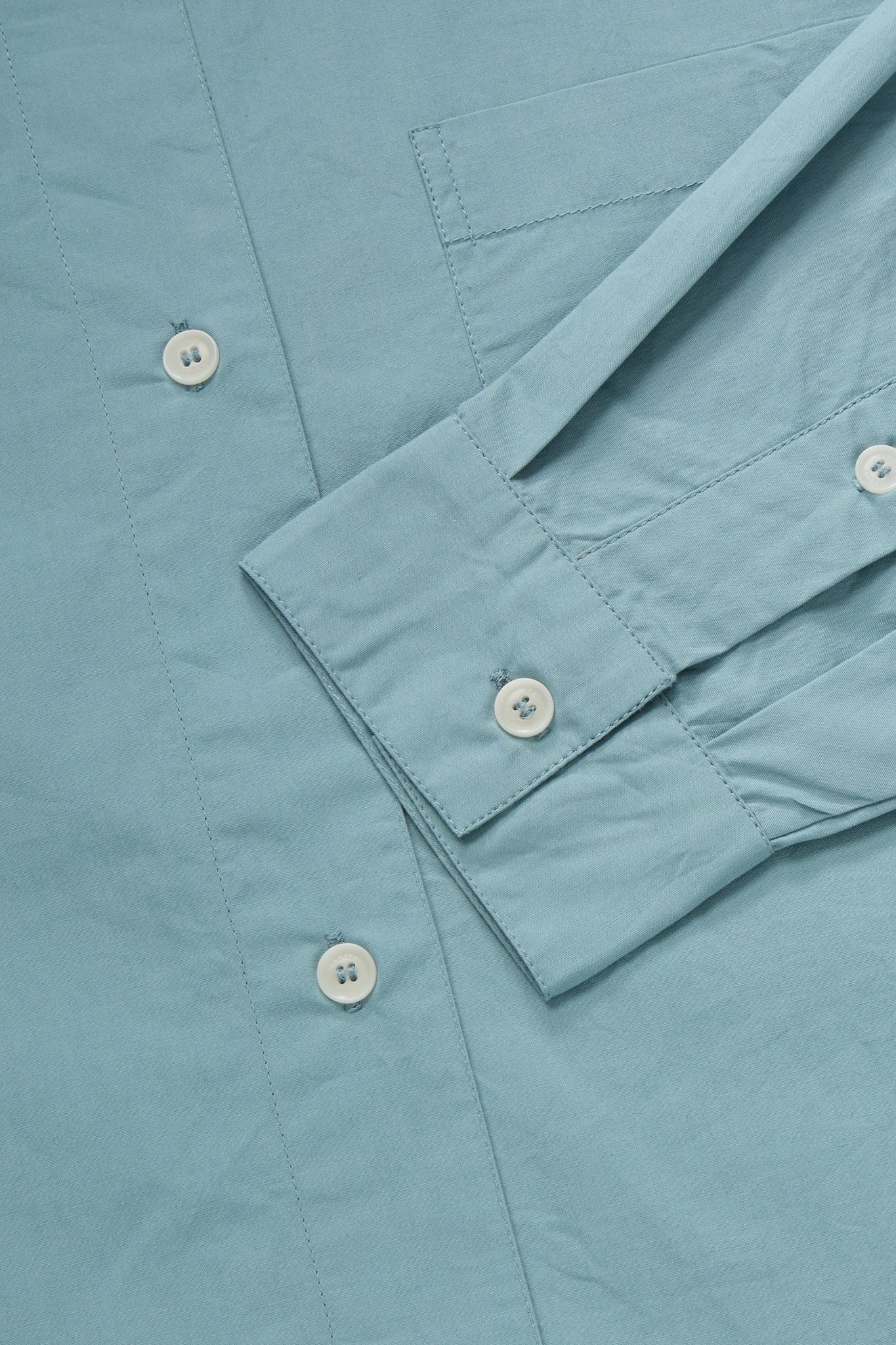 Oversized cotton shirt with classic collar, chest pocket and back pleat.